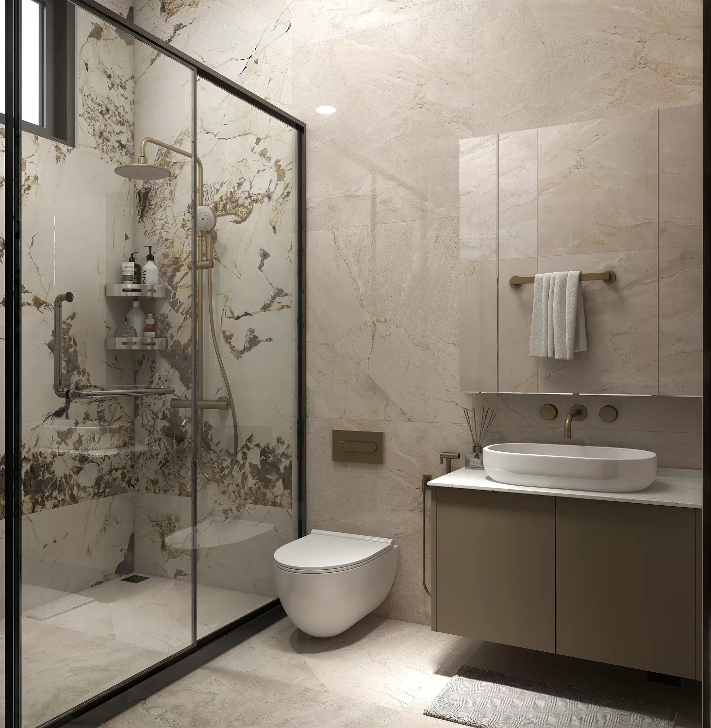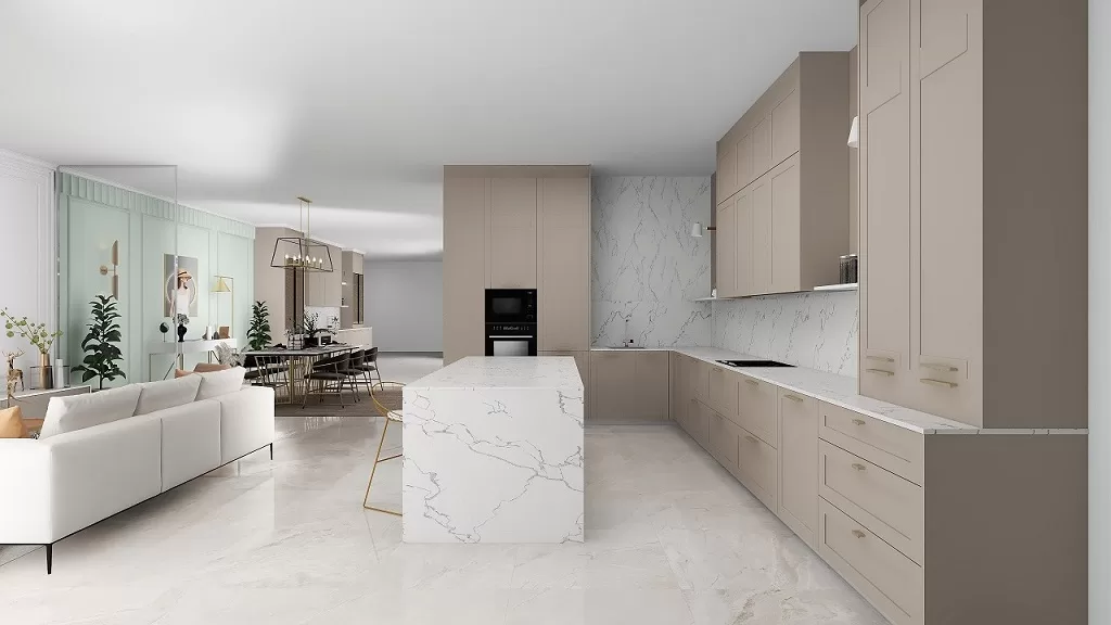 The balanced combination of marble and metallic accents further adds character to your interior.