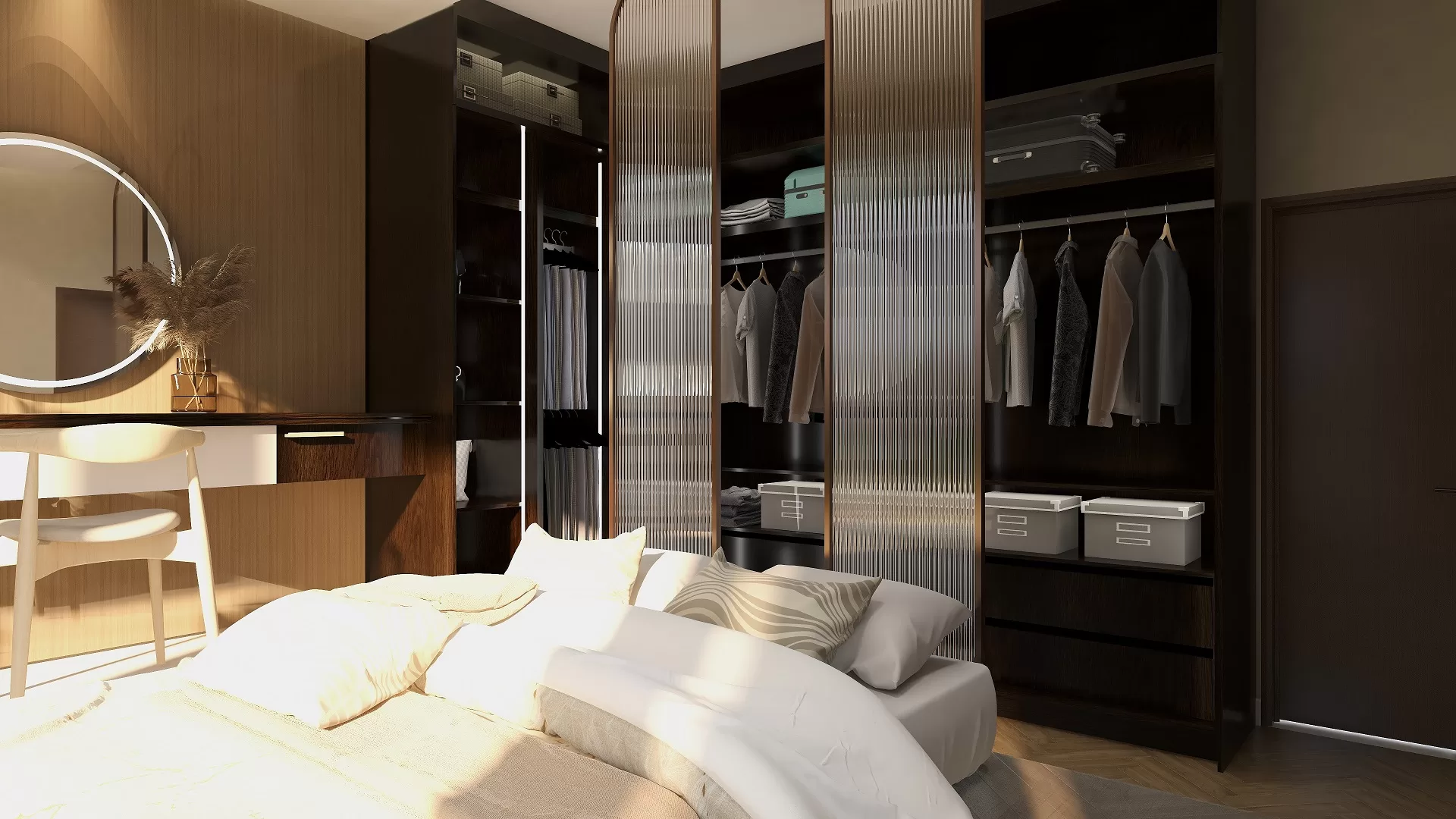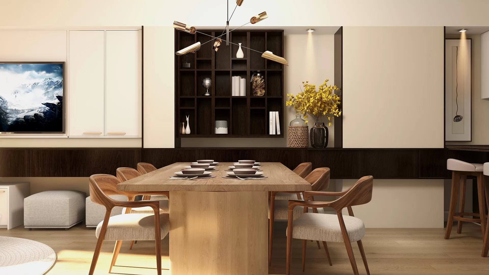 A showcase of elegant sophistication in a subtle way with its warm wood aesthetics, embracing classic architectural details highlighted by accent furniture with modern lines.